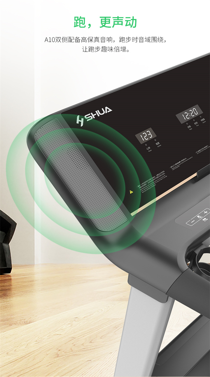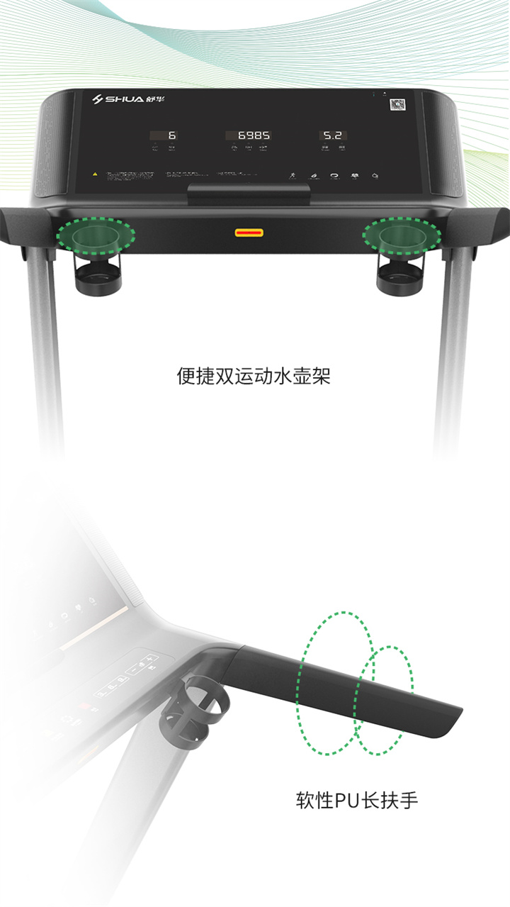 7709美彩国际推荐健身器材-舒华商用电动跑步机SH-T6500拥有10.1寸IPS高清触摸屏、Z型动感时尚外观设计、70×150mm精钢立柱机身、F级高效静音马达、520mm商用豪华跑带和35mm双层全跑台减震跑板等优势,让您享受科学跑步。