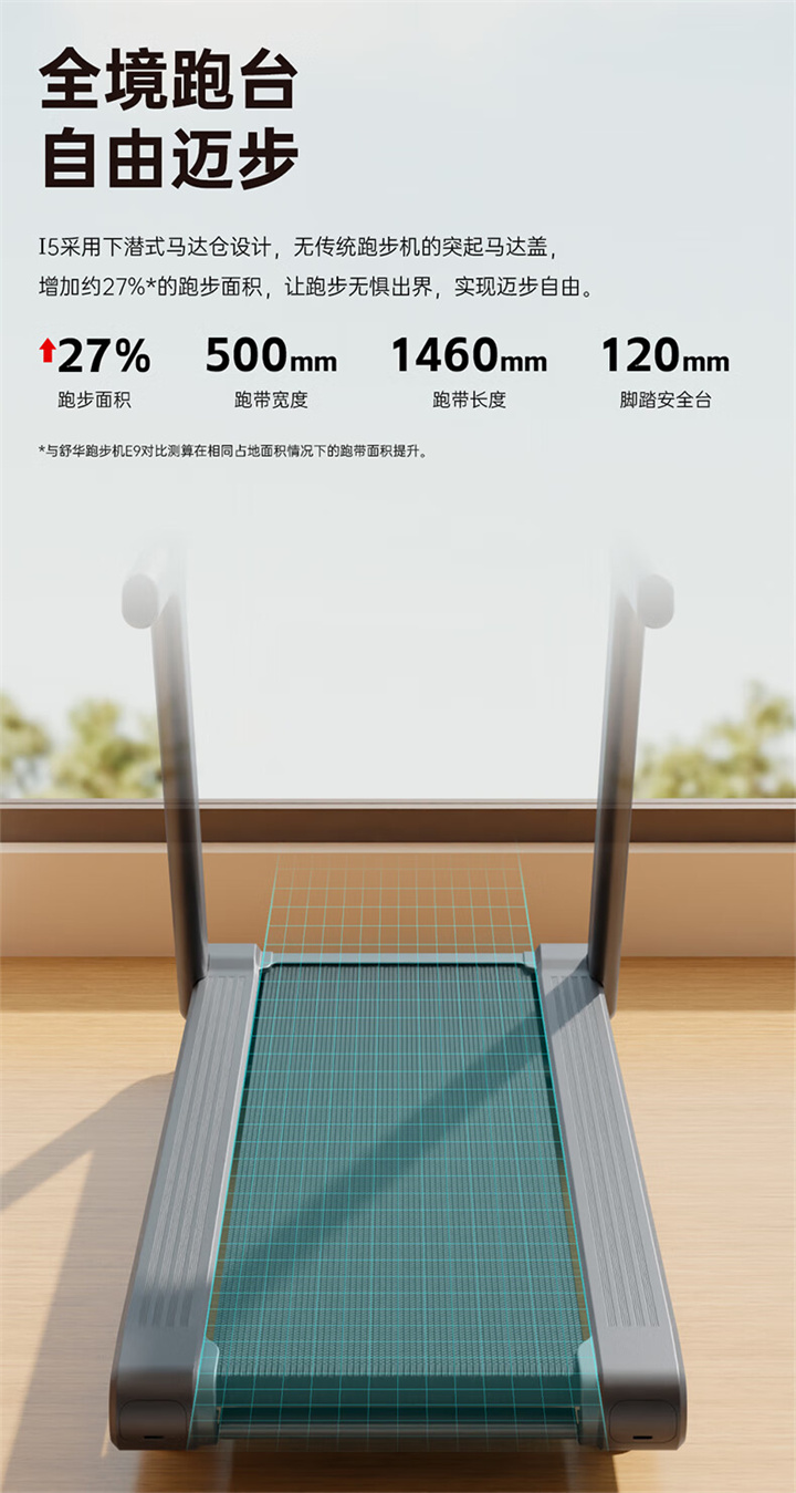 舒华家用跑步机SH-T6700(X6)采用18T+12T双层跑板,T2.2mm钻石纹的跑带,双层跑板全跑台减震,对您跑步中的膝盖进行全方位的呵护,选用接触式心率感应和无线心率感应等多种方式获取数据,跑步面积达520×1450mm,可承受130kg的使用者使用。