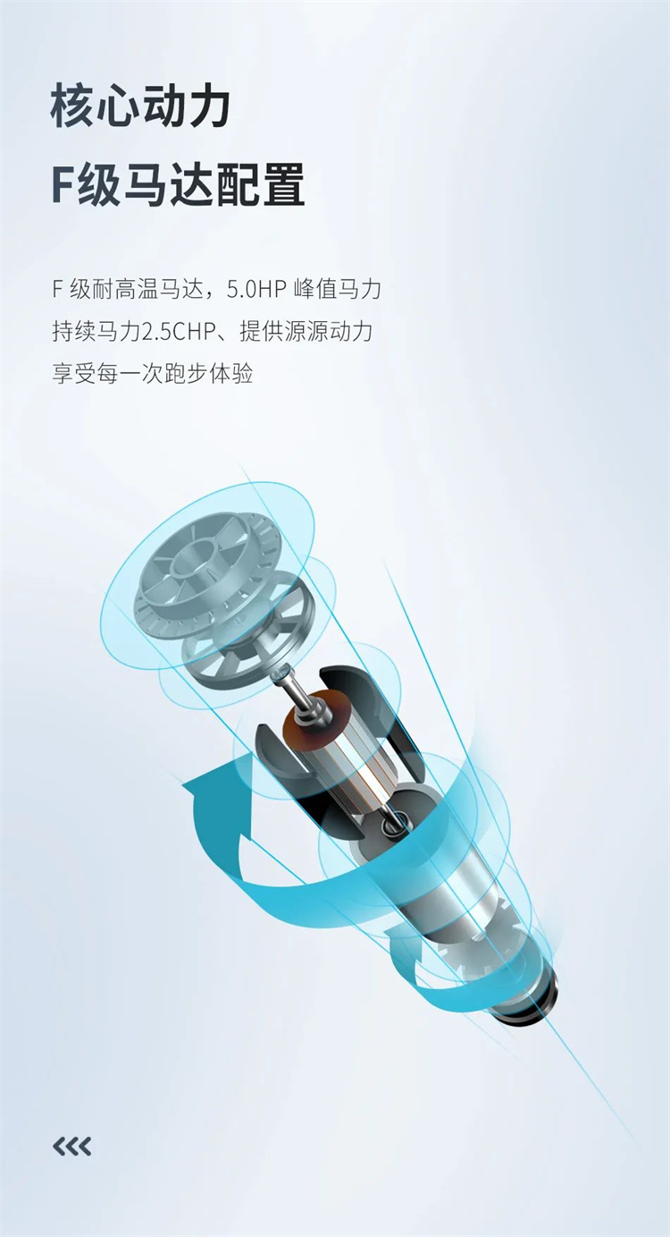 舒华家用跑步机SH-T5100持续马力达1.25HP,具有500×1350mm的跑台,运用无线心率接收模块监测心率,运用6位硅胶减震设计,最大承重是126kg,可以满足大多数家庭的使用。